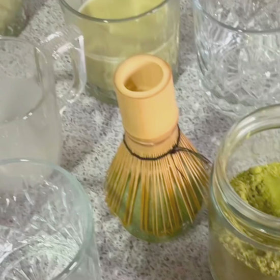 Bate en zigzag con un chasen (batidor de bambú) hasta que esté espumoso.